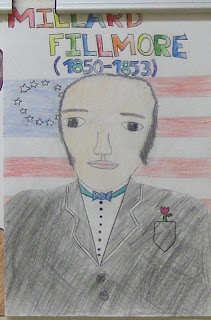 Every winter, though, we’re treated to a surprise on the upper most floor—The Hall of Presidents. You can tell these kids spent quite a bit of time making them. I love every one of them. I’m assuming that there is a corresponding paper to each portrait but I’ve never seen them. I can deduce, though, what might have been on the paper…